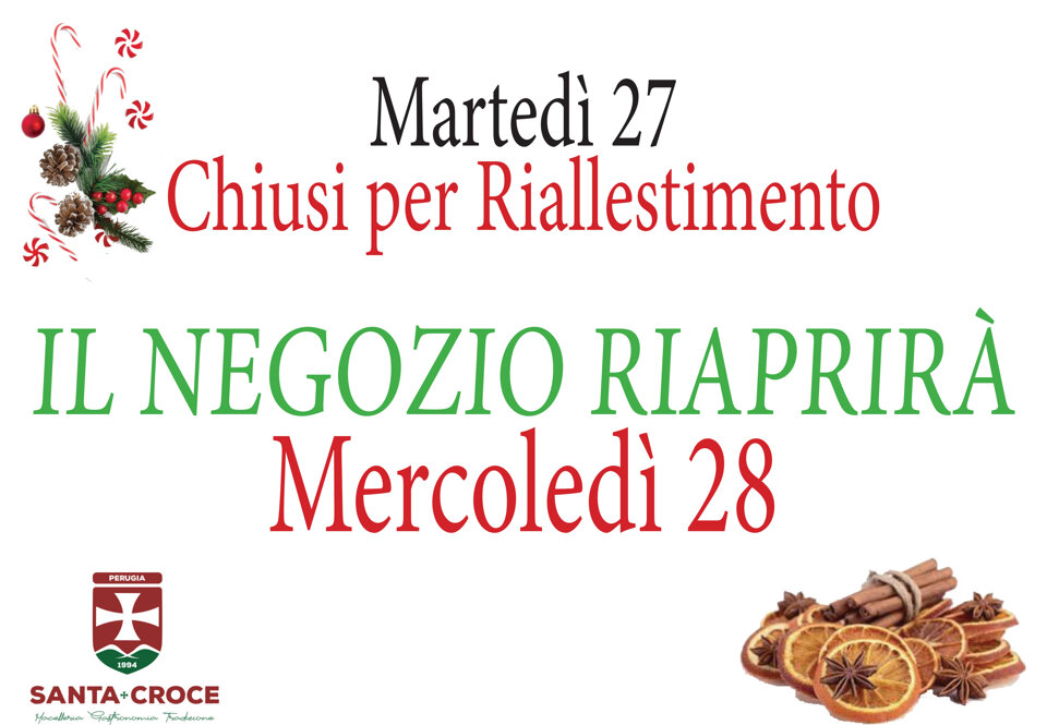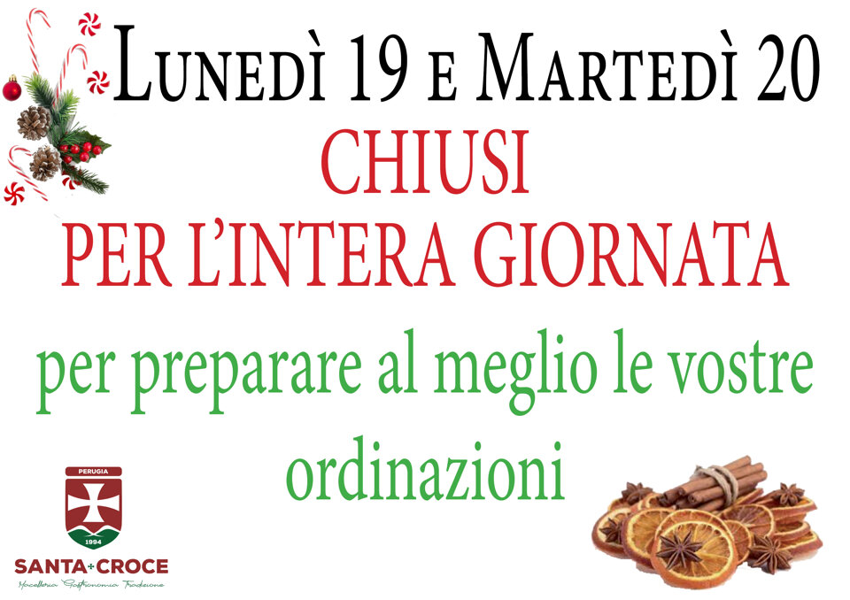 Sabato pomeriggio e lunedì intera giornata chiusi